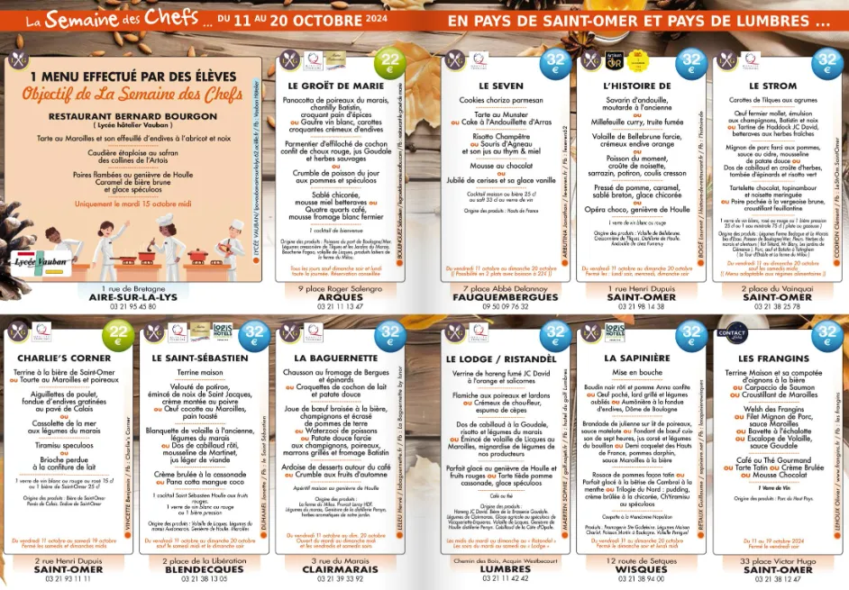 13 restaurants participent cette année à la semaine des chefs dans l'audomarois