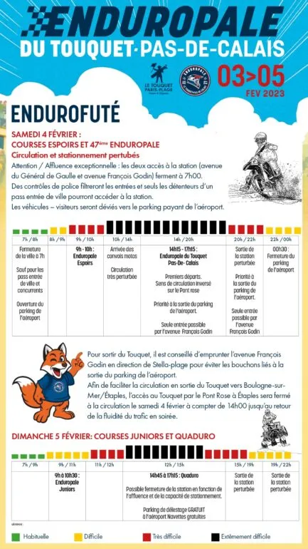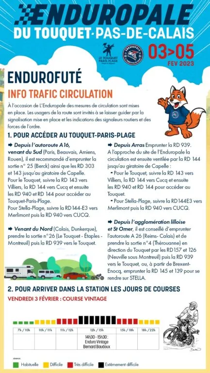 Vous serez encore près d’un demi-million de personnes, peut-être même plus à venir au Touquet pour l’Enduropale. Les courses démarrent ce vendredi, jusque dimanche. L’épreuve reine, c’est ce samedi, dès 14h15, à suivre en direct sur Delta FM. Quelques bons plans à suivre pour pouvoir vivre au mieux l’événement :