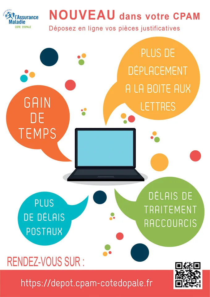 La plateforme de dépôt en ligne des pièces justificatives : depot.cpam-cotedopale.fr.
