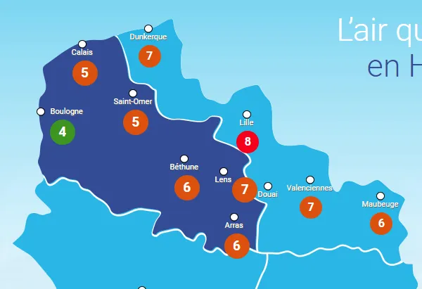 Atmo prévoit un indice de 8 sur 10 (mauvais) à Lille, 7 à Lens-Douai, Valenciennes et Dunkerque.