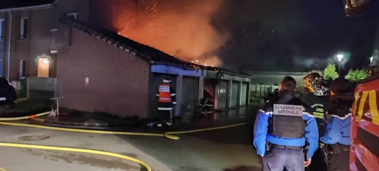 Un violent incendie s’est déclaré ce lundi matin à Bourbourg, au niveau de l’avenue Anthony Caro. Plusieurs garages étaient totalement embrasés à l’arrivée des secours. Les pompiers de Gravelines, Bourbourg et Fort Mardyck ont été mobilisés. Le feu se serait déclaré peu avant 7h ce matin. On ignore pour l'instant l'origine du sinistre.