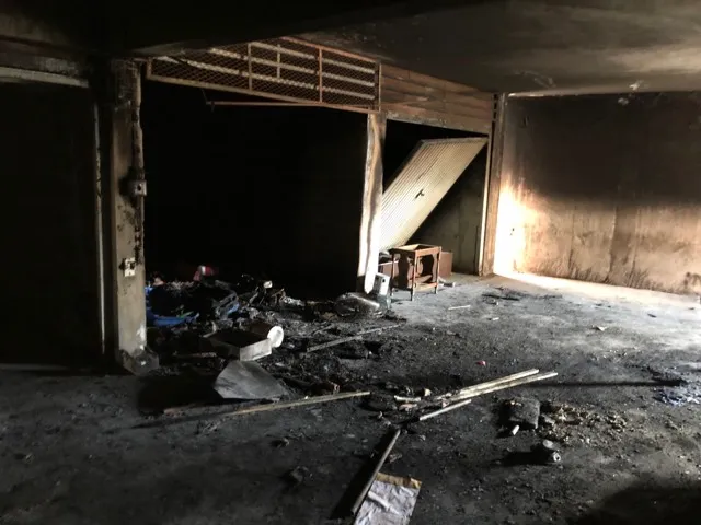 Trois semaines après l’incendie de plusieurs garages, l’expert n’est pas passé, rien n’a été nettoyé, les débris jonchent le sol et les box sont tout simplement inaccessibles. Francis Harsse gare sa moto dans son garage, il ne peut plus la sortir. Il est en colère :