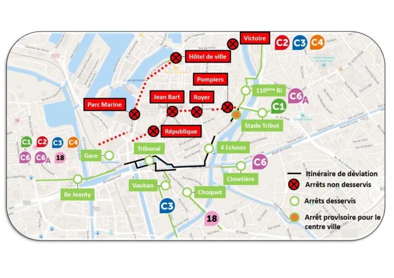 Les arrêts : République, Jean Bart, Royer, Pompiers, Parc Marine et Hôtel de Ville ne seront pas desservis.