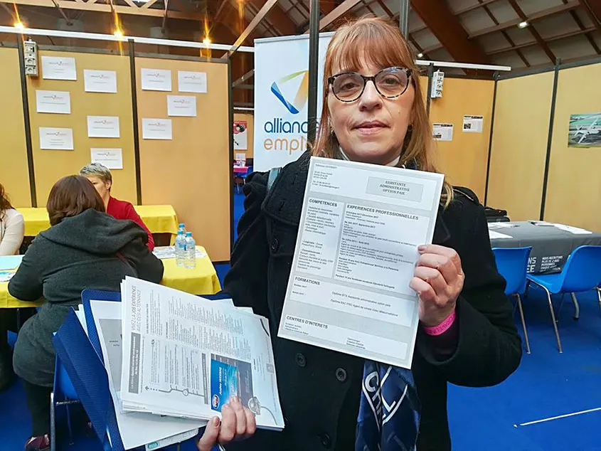 Parmi les visiteurs, il y avait Fabienne, 54 ans. Pendant des années, elle a travaillé comme agent de sécurité mais aujourd’hui, elle doit changer de voie à cause de soucis de santé. Elle est en reconversion professionnelle dans le domaine de la gestion de paie, et elle a bien du mal à trouver un emploi :