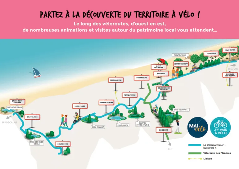L’occasion pour la Communauté urbaine de Dunkerque de mettre à l’honneur le vélo. Ce samedi 28 mai la Cud vous propose de découvrir d’Ouest en Est le territoire le long des véloroutes. De nombreuses animations et visites autour du patrimoine sont au programme.