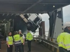 Ce dimanche vers 17h30, un camion, d'une société de transport lituanienne, a basculé d'un ferry au terminal de Loon-Plage. Le véhicule débarquait d'un navire de la compagnie DFDS en provenance de l'Angleterre. Le chauffeur victime d'un malaise a perdu le contrôle, et le véhicule s'est retrouvé à cheval entre la passerelle et la mer, retenu par sa remorque reposant sur le