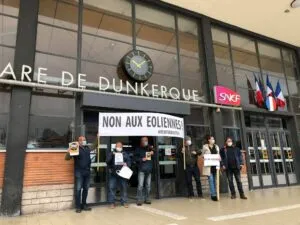 La ministre de la transition écologique était attendue, ce matin, devant la gare. Les membres du collectif "Vent de Debout", opposé au projet d'éoliennes, s'étaient rassemblés :