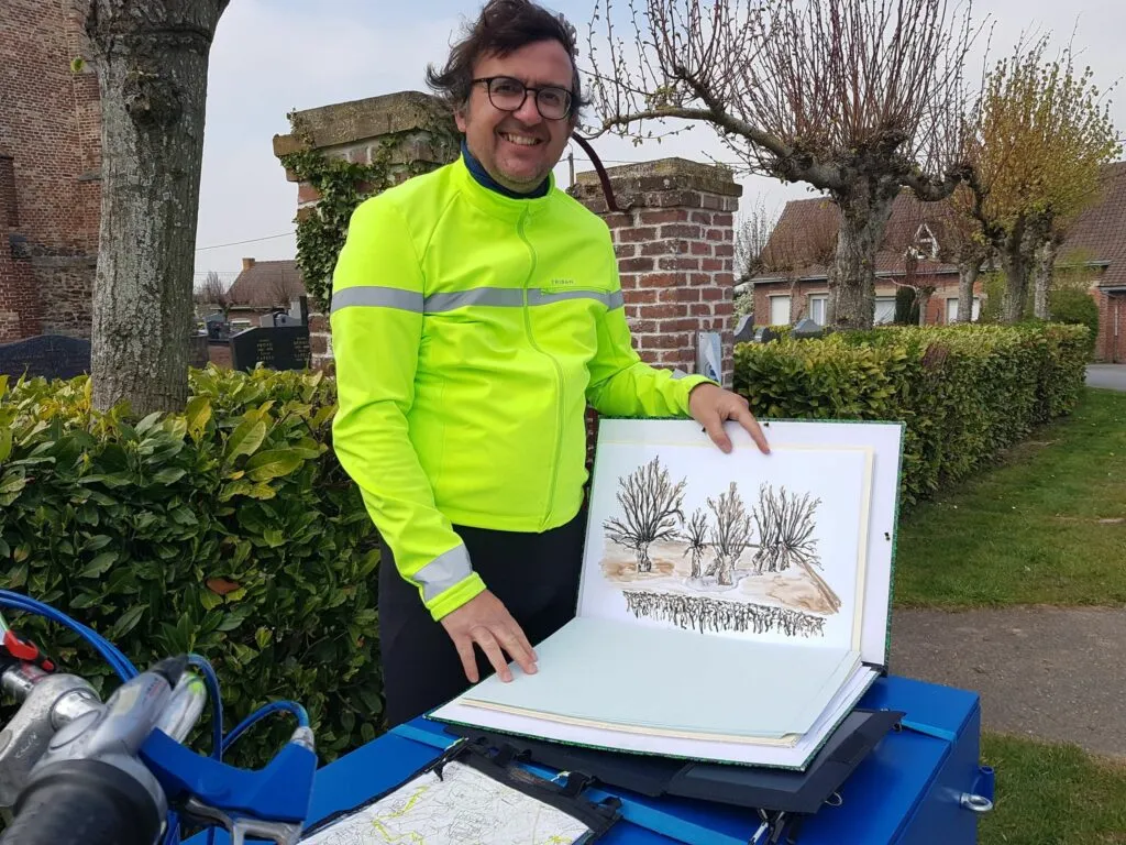 Il a posté chaque jour ses dessins et ses photos, ainsi que le récit de son expérience sur la page facebook : Culture en Coeur de Flandre.