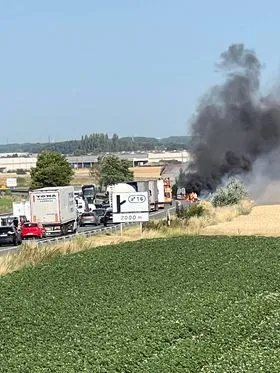 Fourgon en feu sur l'A25, l'autoroute fermée au niveau de Quaëdypre
