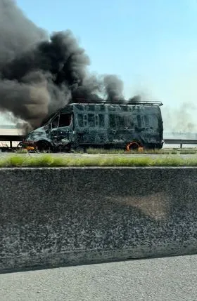 Le fourgon a pris feu sur l'A25 au niveau de Quaëdypre