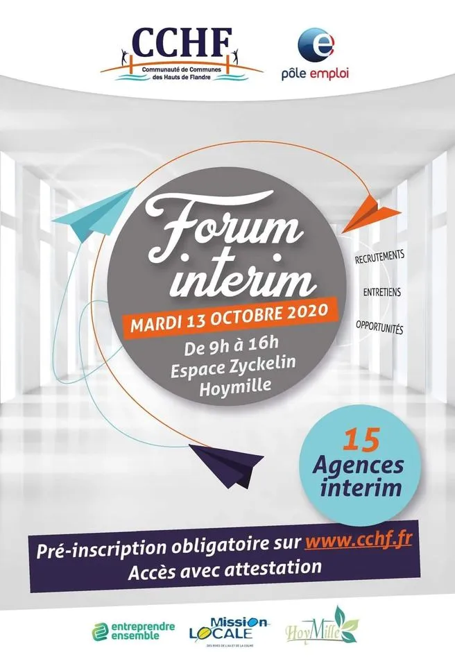 Le forum de l’intérim ce sera le 13 octobre à Hoymille. Inscription obligatoire et dès maintenant pour avoir une place.