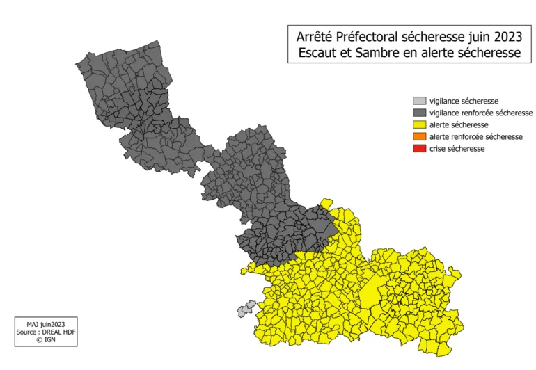 Au sud du département, les bassins de l’Escaut et de la Sambre sont eux placés en alerte, avec des mesures plus restrictives encore pour préserver la ressource.