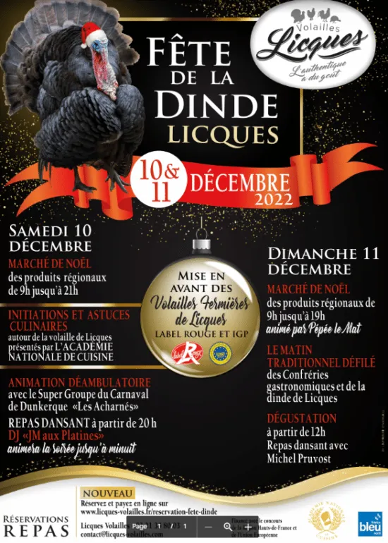 Les volailles sont de retour. Les dernières éditions de la fête de la dinde avaient été annulées en raison de la pandémie. Rendez-vous ce week-end, les 10 et 11 décembre dans la commune avec le traditionnel salon gastronomique, les ateliers de cuisine pour apprendre à cuisiner de la meilleure des manières toutes sortes de volailles. Le défilé de dindes dans les rues de Licques est lui aussi de retour même si le parcours n’est pas encore dévoilée.