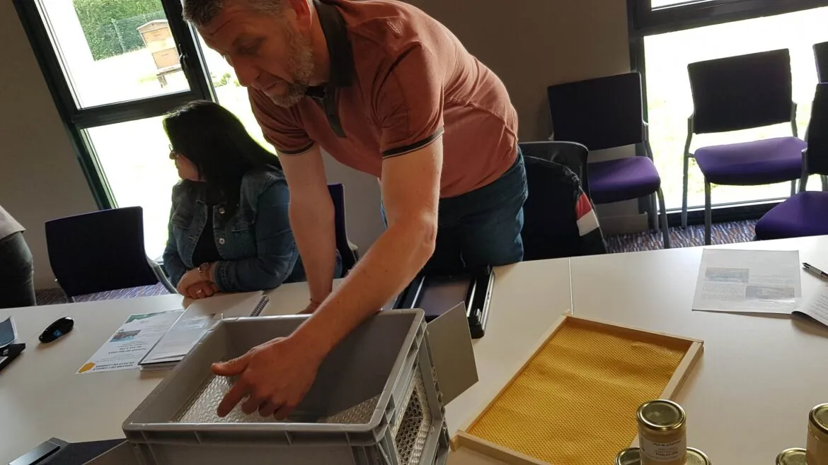 Elle s’est équipé de pièges et accompagne les communes. Le principe : un appât attire les insectes dans une boîte et tous peuvent ressortir sauf le frelon asiatique. Une manière de protéger les ruches contre ce prédateurs qui peut décimer un essaim en quelques heures.