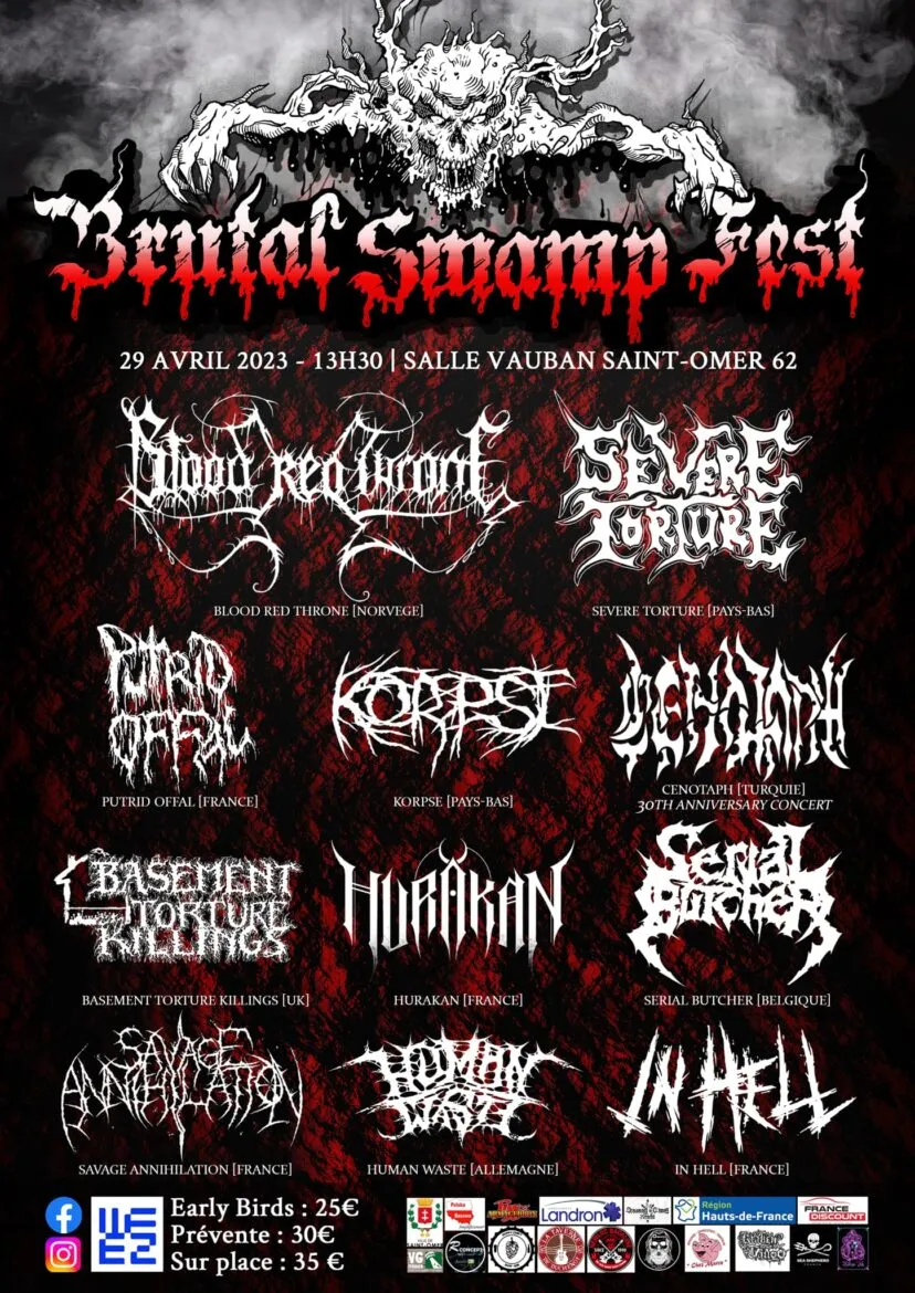 Le Brutal Swamp Fest, c’est donc ce samedi 29 avril à Saint-Omer. Ouverture des portes dès 13h30. Comptez 30 euros la place en prévente, 35 euros sur place.