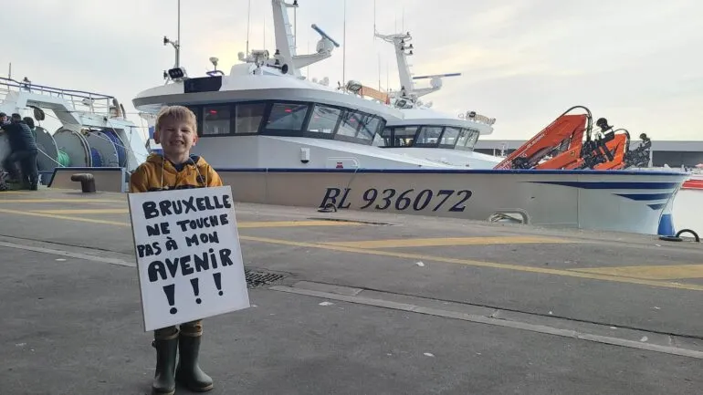 Jeudi, des pêcheurs se sont réunis sur les quais avec leurs familles. A cinq ans, ce petit garçon aimerait "faire comme papa".