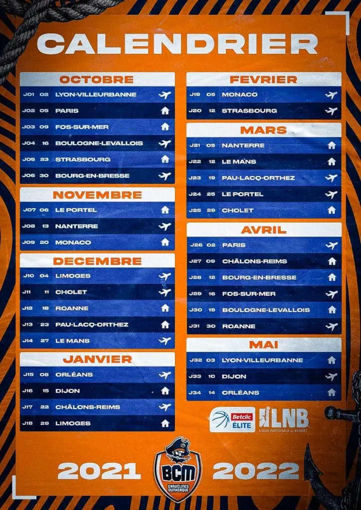 A la demande des joueurs et en raison du contexte sanitaire, le championnat Betclic Elite (ex Jeep Elite) débutera plus tard que d'habitude, le 2 octobre 2021. Les deux clubs de la Côte d'Opale commenceront fort, puisque le BCM Gravelines-Dunkerque se déplacera à Lyon-Villeurbane. L'ESSM Le Portel, de son côté, recevra Orléans au Chaudron. La semaine suivante, ce sont les Portelois qui iront défier l'ASVEL, tandis que Paris débarquera à Sportica pour le premier match à domicile du BCM.