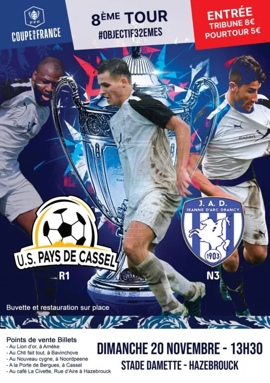 Les détails pour suivre l'Historique 8ème tour de coupe de France de Pays de Cassel
